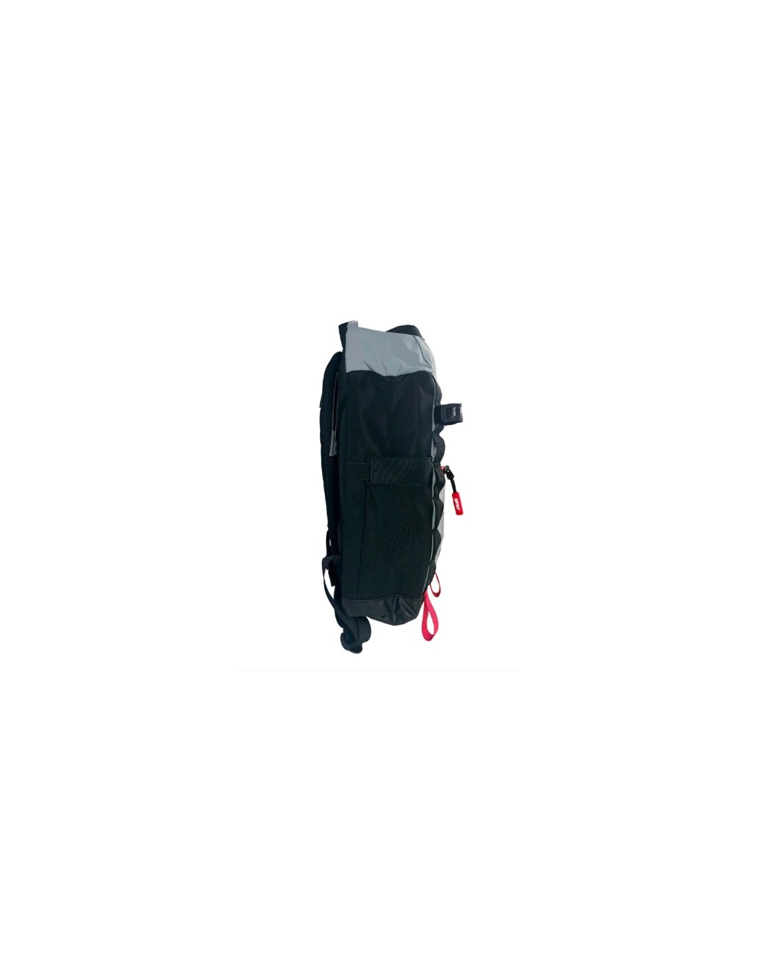 El espacioso compartimento principal cuenta con un práctico acceso lateral y bolsillos internos con cremallera.