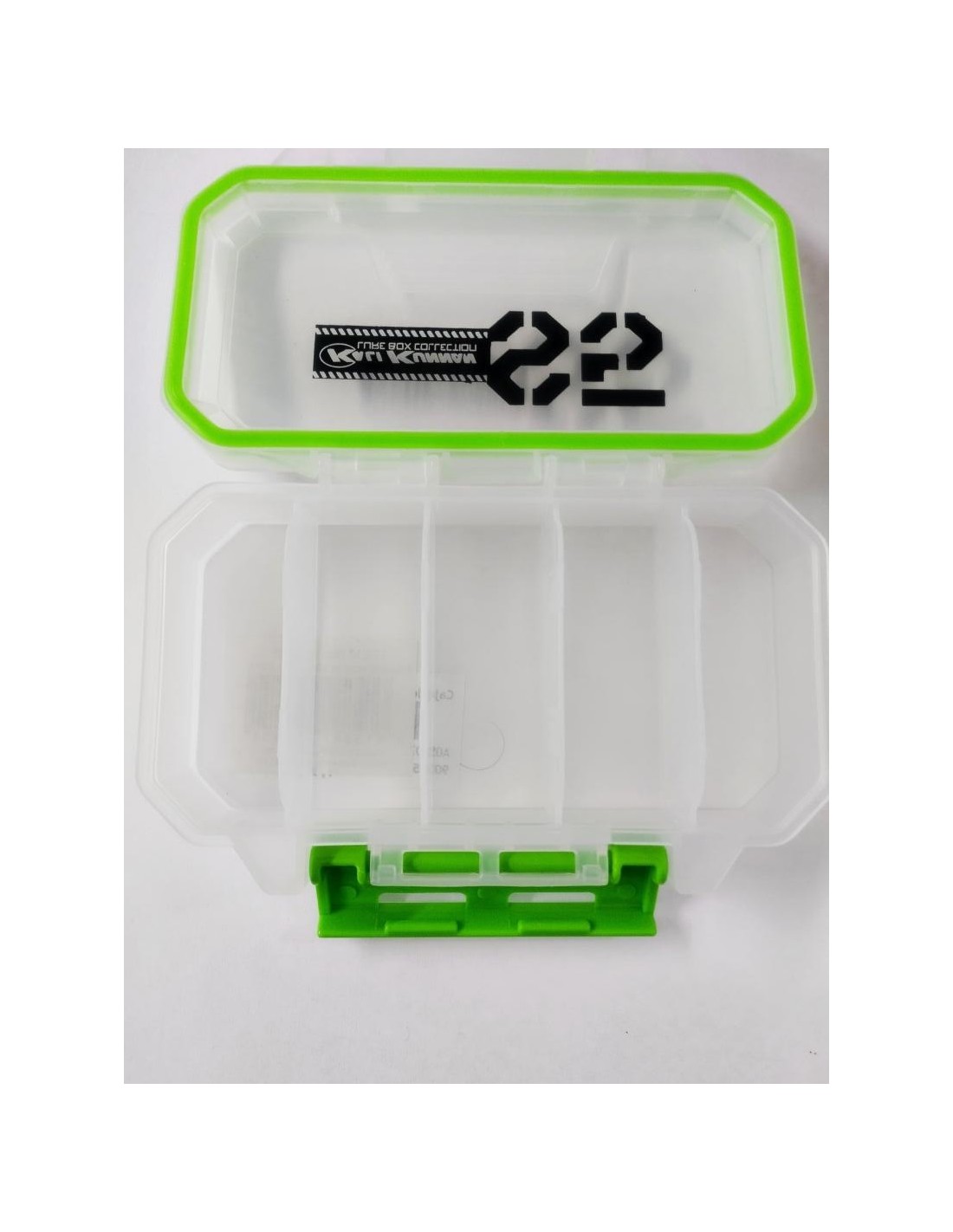Caja antivinil translúcida con 5 departamentos, ideal para guardar y transportar nuestros accesorios y señuelos de pesca.