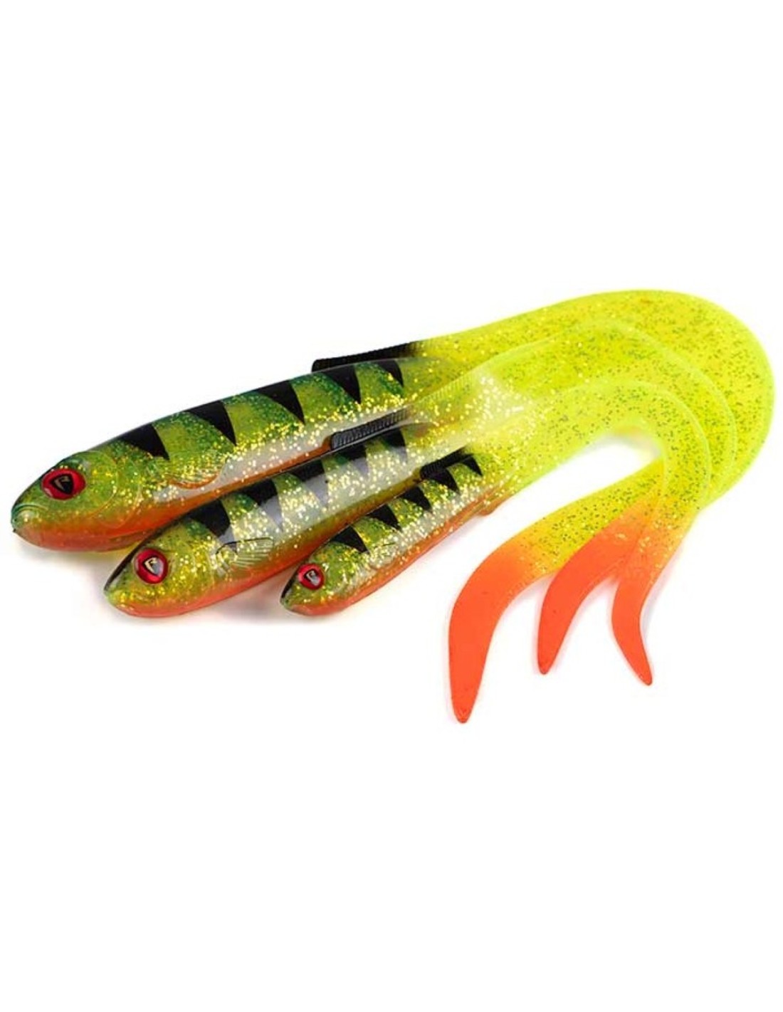 Fácil de montar solo con cabezas plomadas, triples o un arnés, o como trailer en un Spinnerbait o Bladed Jig usando un Strike Point Trailer Hook.