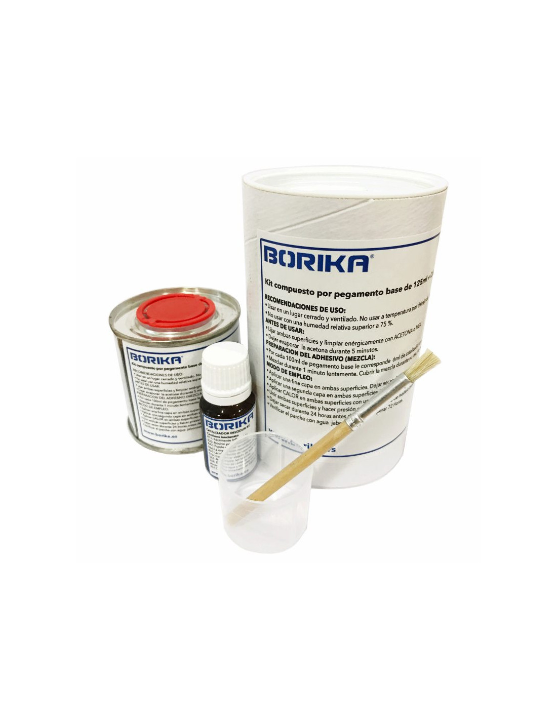 Incluye dosificador, pincel para aplicación, catalizador y pegamento.