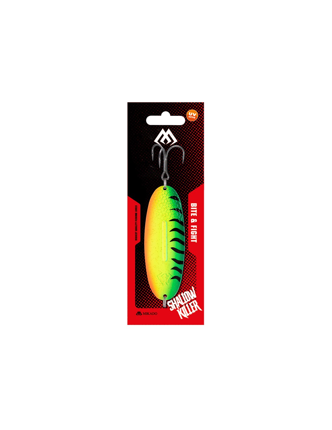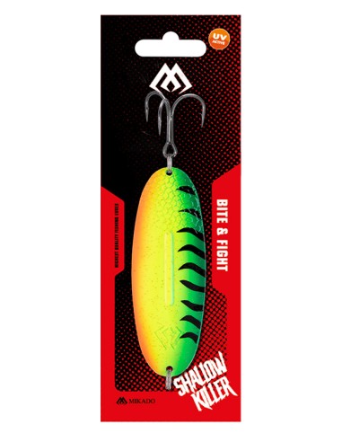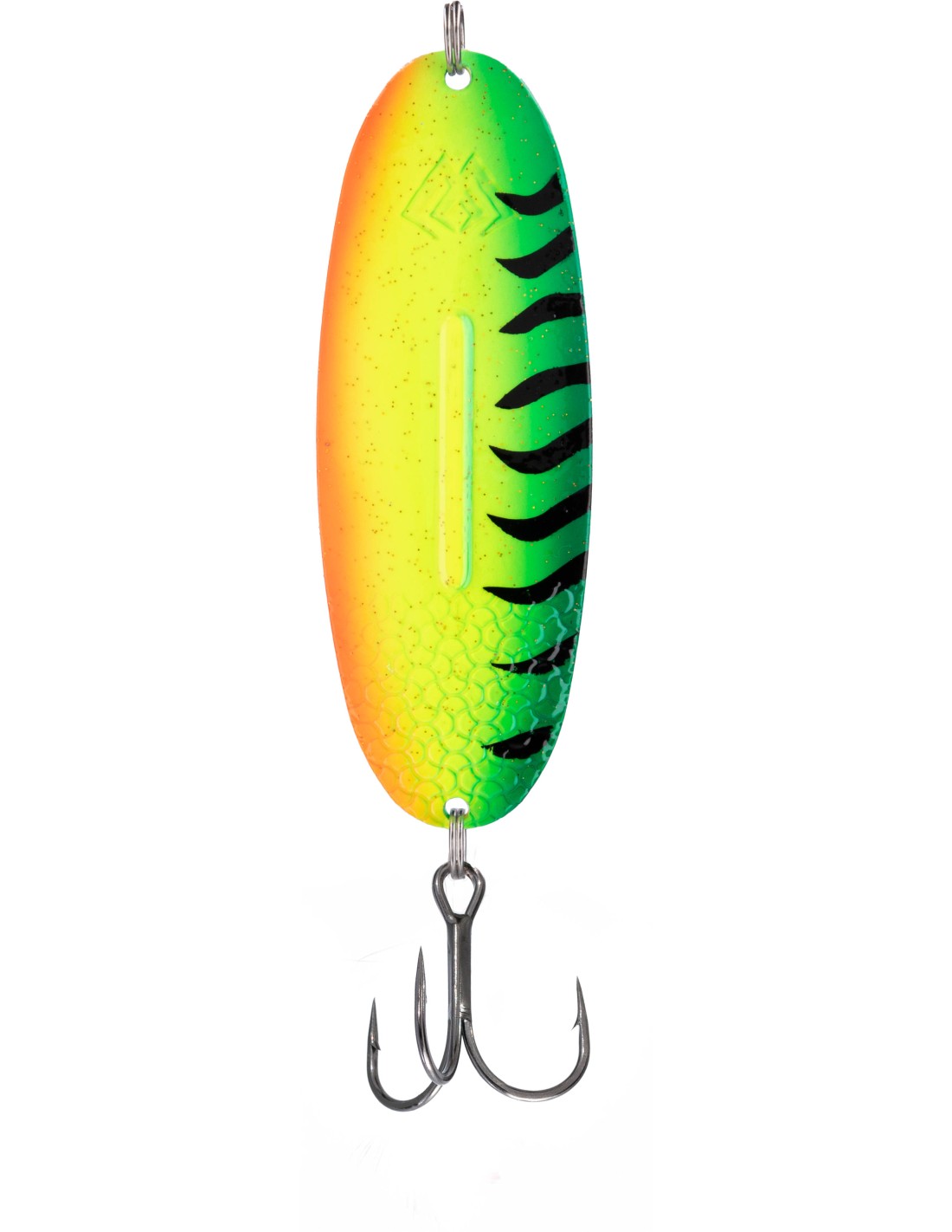 Esta cuchara de perfil fino, elaborada con metal delgado, es perfecta para pescar peces depredadores en aguas poco profundas y alrededor de zonas con vegetación acuática.